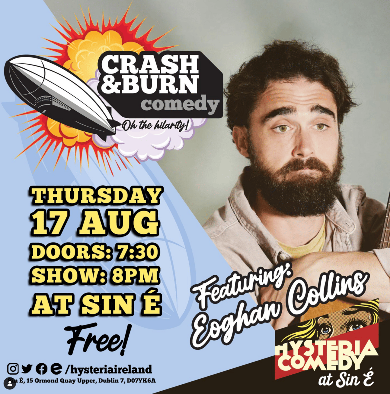Crash & Burn Comedy, a free stand up show on every Thursday in Sin É, is a great room to hear some jokes that no audience has heard before.